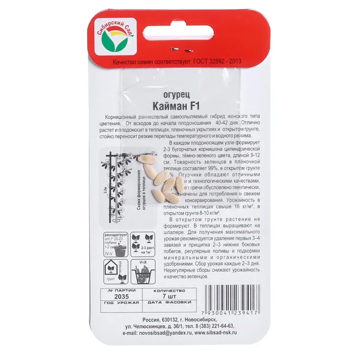 Корнишонный раннеспелый самоопыляемый гибрид женского типа цветения. От всходов до начала плодоношения 40-42 дня. Отлично растет и плодоносит в теплицах, пленочных укрытиях и открытом грунте, стойко переносит резкие перепады температурного и водного режима.
