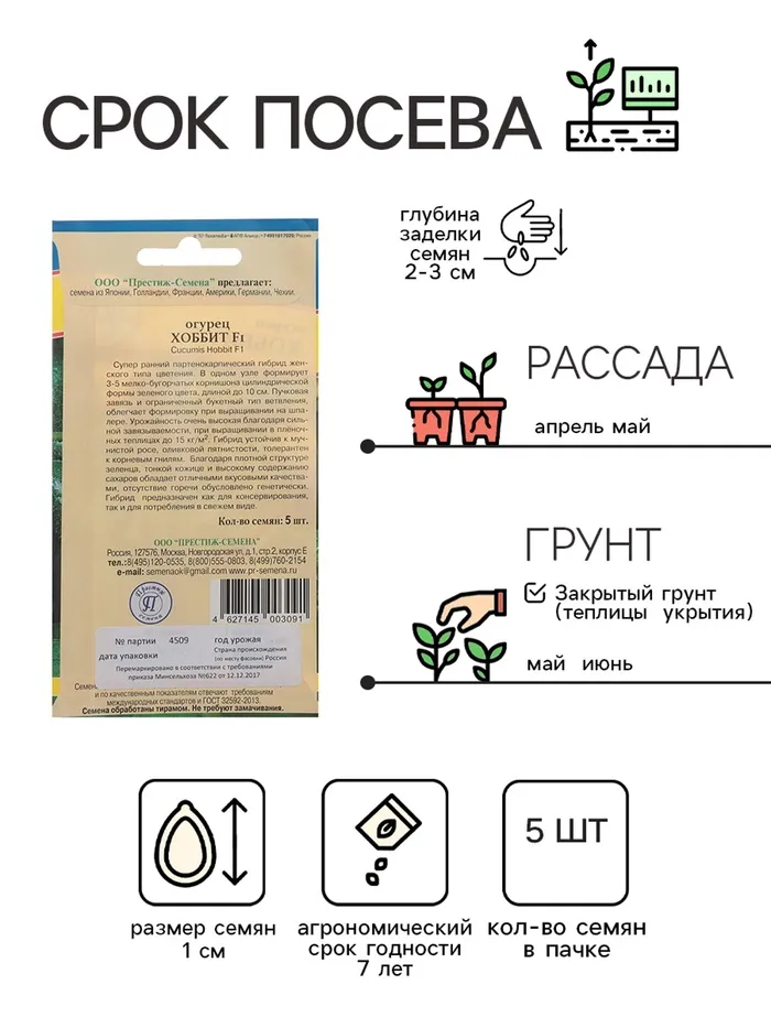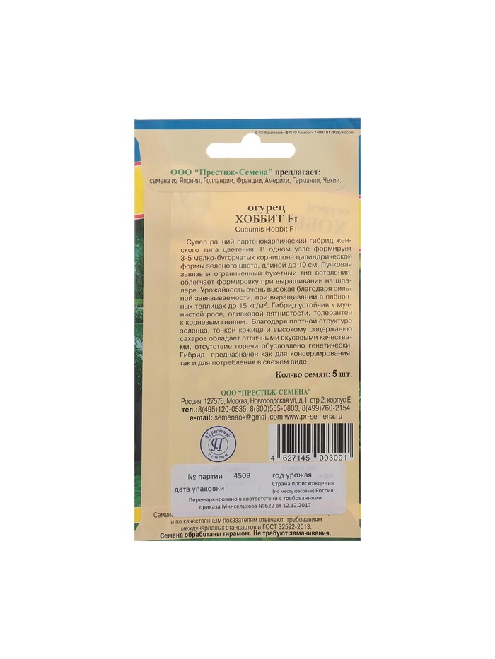 Суперранний партенокарпический гибрид женского типа цветения. В одном узле формирует 3-5 мелко-бугорчатых корнишона цилиндрической формы зеленого цвета, длиной до 10 см. Пучковая завязь и ограниченный букетный тип ветвления, облегчает формировку при выращивании на шпалере. Урожайность очень высокая благодаря сильной завязываемости, при выращивании в плёночных теплицах до 15 кг/м2. Гибрид устойчив к мучнистой росе, оливковой пятнистости, толерантен к корневым гнилям. Благодаря плотной структуре зеленца, тонкой кожице и высокому содержанию сахаров обладает отличными вкусовыми качествами, отсутствие горечи обусловлено генетически. Гибрид предназначен как для консервирования, так и для потребления в свежем виде.