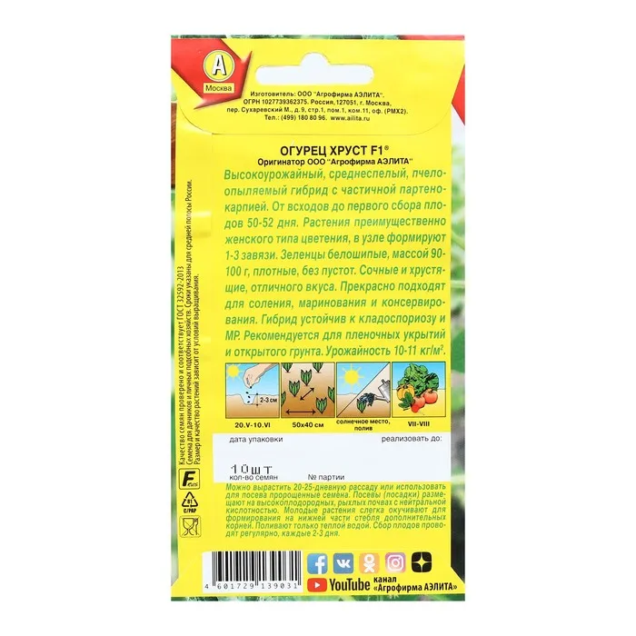 Среднеспелый сорт с необычной окраской плодов и прекрасным вкусом. Плоды цилиндрические, крупнобугорчатые, с черным опушением. Вес каждого корнишона в среднем достигает 60-70 г, длина плода 7-10 см. Отличается ярким, светлым, почти белым цветом, деликатесным вкусом, устойчивостью к мучнистой росе. Прекрасно подходит для консервирования.