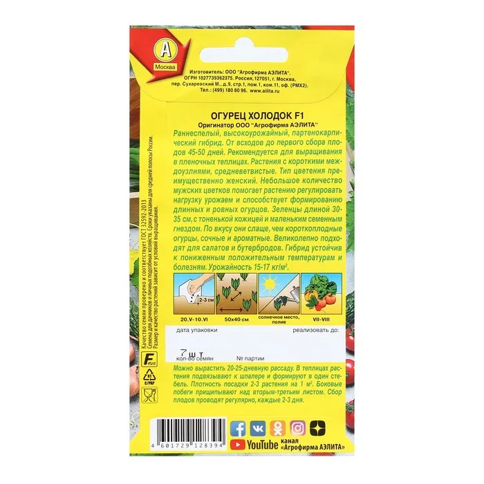 Раннеспелый, длинноплодный сорт с очень высокой урожайностью. Партенокарпические плоды рекомендуется выращивать в теплицах или парниках. Уже на 45-50 день из женских цветков, которых большинство, формируются сочные, хрустящие и ароматные зеленцы длинной до 30-35 см с очень тонкой кожицей и небольшим количеством семян. Они превосходят короткоплодные гибриды по вкусовым качествам: мякоть более сладкая, а кожица никогда не будет горькой. Не подходят для консервирования, но станут отличным ингридиентом для салатов, сэндвичей.