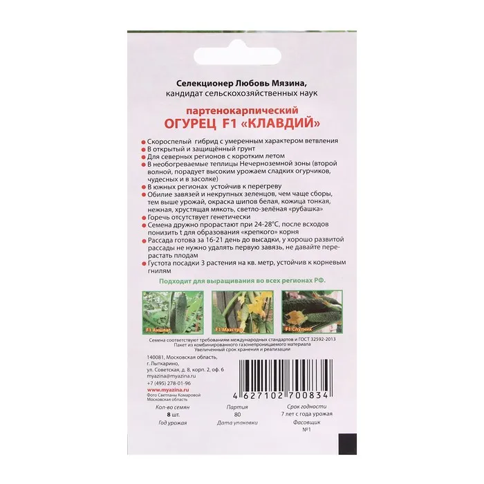 Семена Огурец "Клавдий F1", 8 шт — Характеристики