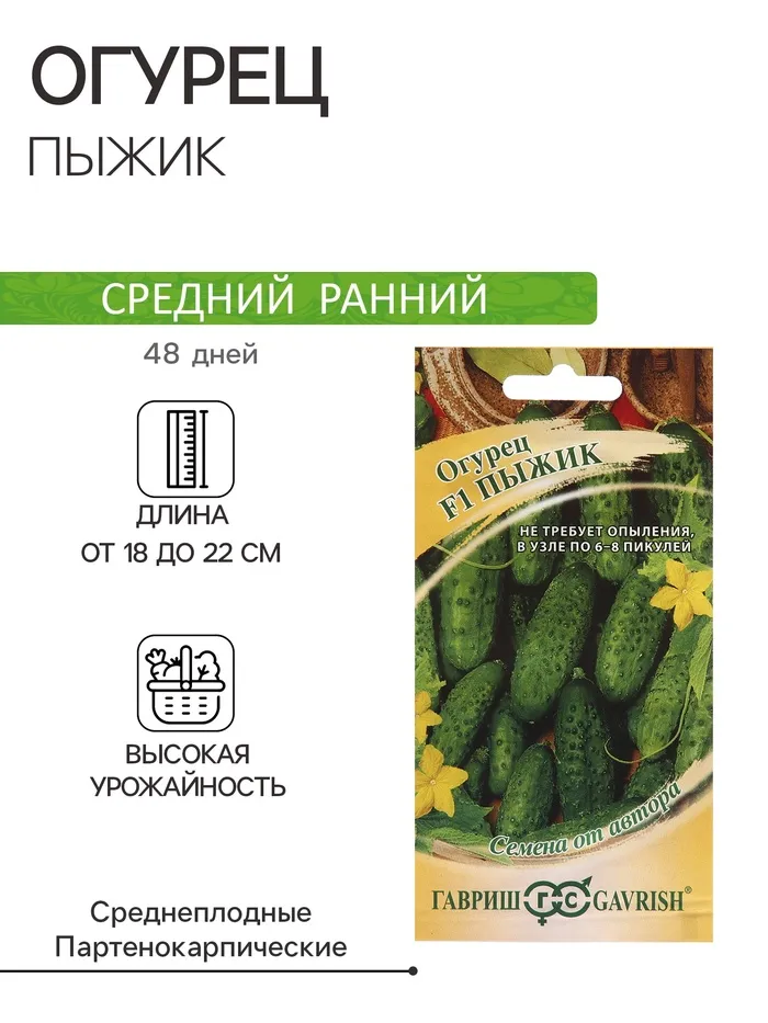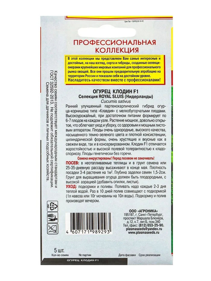 Семена Огурец "Клодин" F1, Раннеспелый, партенокарпический, 5 шт — Характеристики