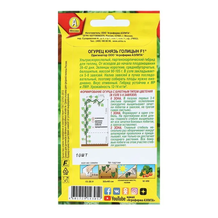 Ультраскороспелый, высокоурожайный партенокарпический гибрид. Период от всходов до начала плодоношения 39-42 дня. Предназначен для выращивания в пленочных укрытиях. Растения исключительно женского типа цветения. Завязи закладывают пучками, по 2-3 шт. в каждом узле. Плоды короткие, веретеновидные, крупнобугорчатые, массой 90-105 г. Долго не перерастают и не желтеют. Вкус отменный, огурчики сочные, хрустящие, без горечи. Рекомендуется для потребления в свежем виде, соления и консервирования. Урожайность – 12-14кг/м 2 . Выход товарной продукции-96-98%. Гибрид устойчив к настоящей мучнистой росе, ВОМ-1 и корневым гнилям.