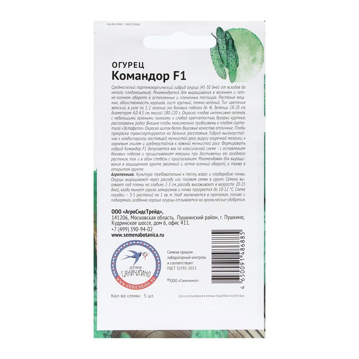 Агротехника: культура требовательна к теплу, влаге и плодородию почвы. Огурцы выращивают через рассаду или посевом семян в грунт. Семена высеивают под пленку на глубину 2-3 см, рассаду высаживают в возрасте 20-25 дней, когда минует угроза заморозков и почва прогреется до 10-12 С. Схема посадки – 3-5 растений на 1 кв. м. Уход заключается в прополках, поливе и подкормках, особенно хорошо огурцы отзываются на органические удобрения.