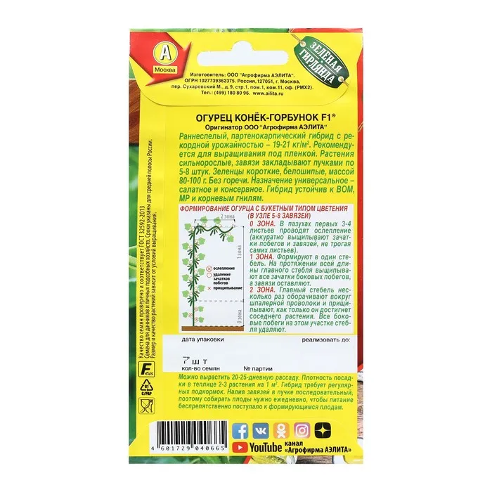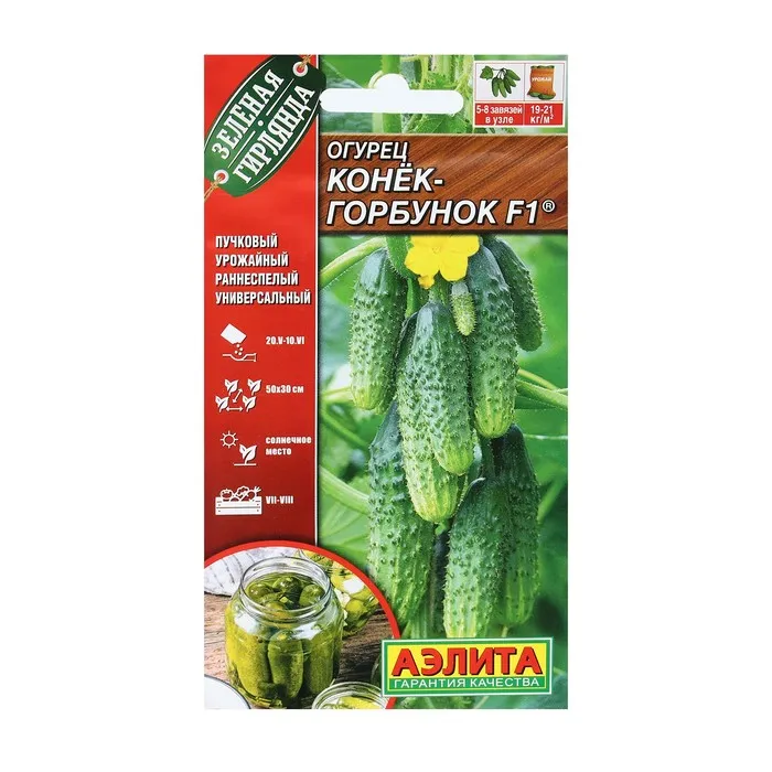 Семена Огурец «Конек-горбунок» F1, раннеспелый партенокарпический, 7 шт. — Характеристики