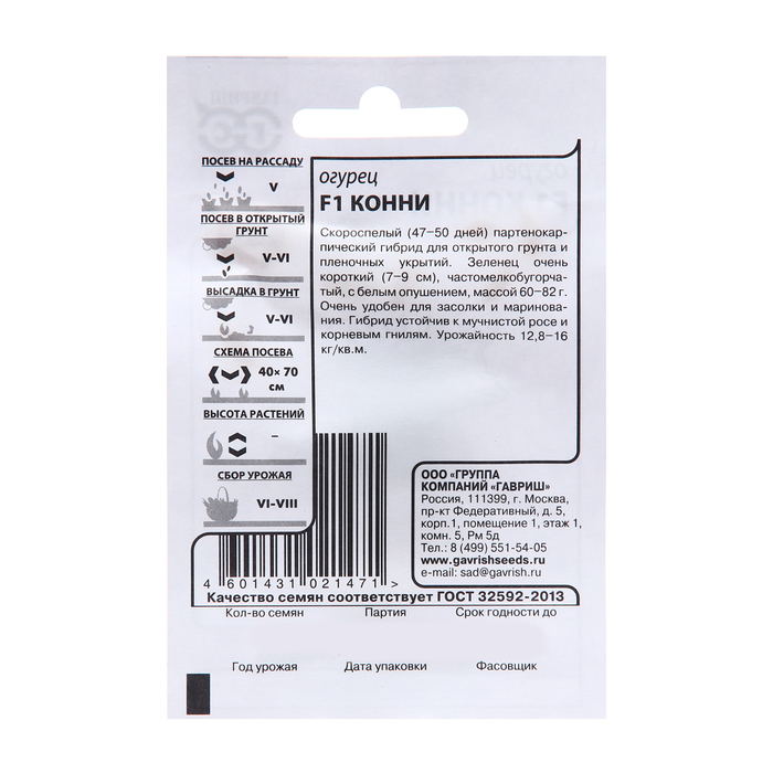 Раннеспелый (47-50 дней) партенокарпический гибрид для выращивания в весенне-летнем обороте под пленочным укрытием. Растение сильнорослое, женского типа цветения, с пучковым заложением завязей. Зеленец цилиндрический, мелкобугорчатый, длиной 7-9 см, массой 60-82 г. Плоды генетически без горечи, прекрасных вкусовых качеств, очень ароматные и хрустящие. Идеален для засолки и консервирования. Гибрид устойчив к вирусу огуречной мозаики, оливковой пятнистости, настоящей мучнистой росе. Неприхотлив в неблагоприятных погодных условиях.