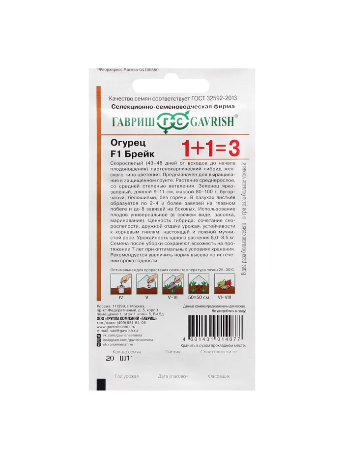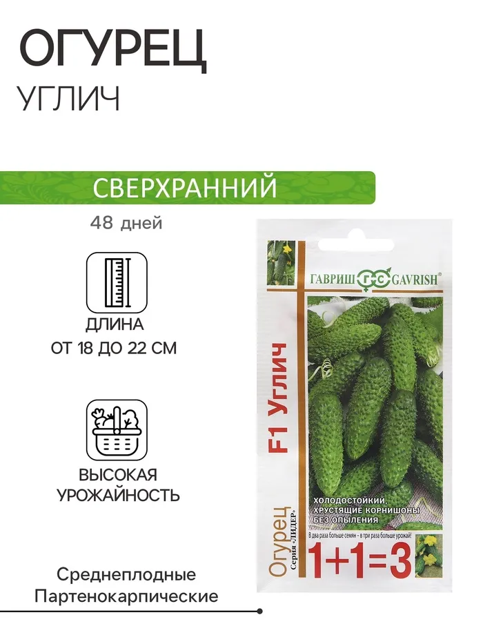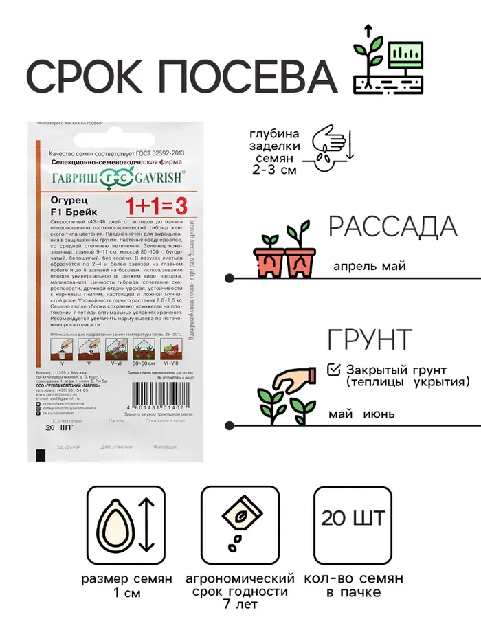 Семена Огурец корнишон "Брейк F1", серия 1+1, 20 шт — Характеристики