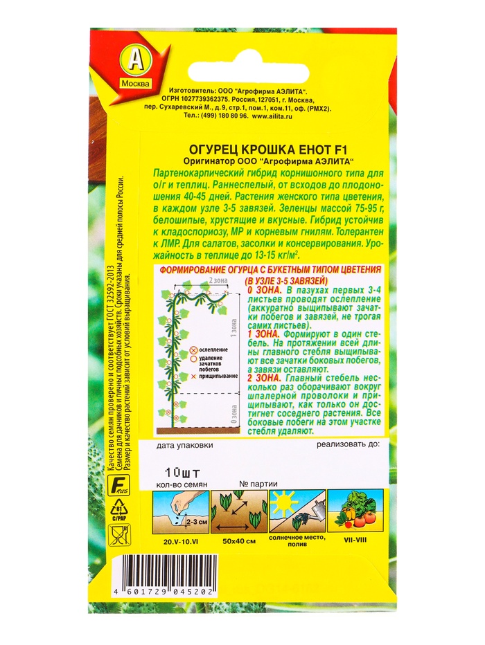 Семена Огурец «Крошка енот», партенокарпический, 10 шт., «Агрофирма АЭЛИТА» — Характеристики