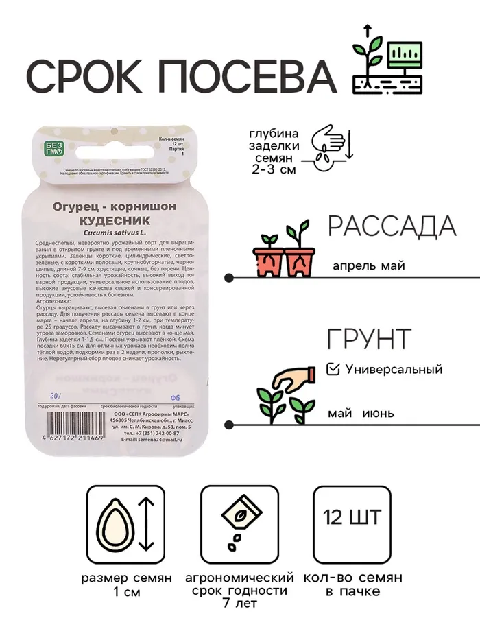 Для получения рассады семена высевают в конце марта-начале апреля, на глубину 1-2 см, при температуре 25°C. Рассаду высаживают в грунт, когда минует угроза заморозков. Семенами огурец высевают в конце мая. Глубина заделки 1-1,5 см. Посевы укрывают плёнкой. Схема посадки 60х15 см. Для отличных урожаев необходим полив тёплой водой, подкормки раз в 2 недели, прополки, рыхление. Нерегулярный сбор плодов снижает урожайность.