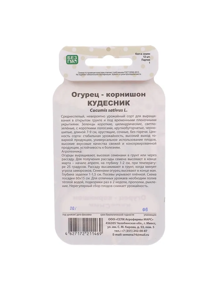 Среднеспелый, невероятно урожайный сорт для выращивания в открытом грунте и под временными пленочными укрытиями. Зеленцы короткие, цилиндрические, светло-зелёные, с короткими полосами, крупнобугорчатые, черношипые, длиной 7-9 см, хрустящие, сочные, без горечи.