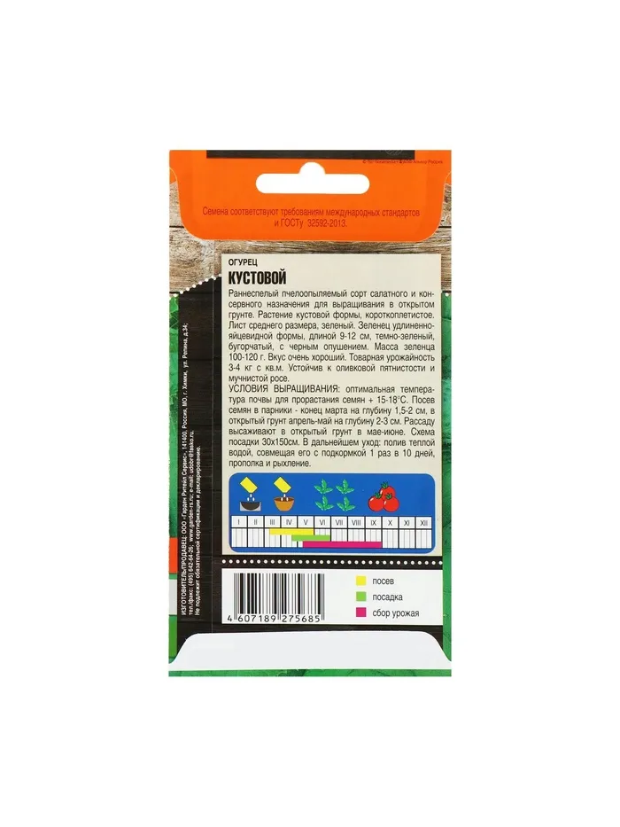 Семена Огурец "Кустовой" раннеспелый, пчелоопыляемый, 0,3 г — Характеристики