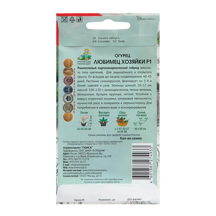 Семена Огурец "Любимец хозяйки", 12 шт — Характеристики