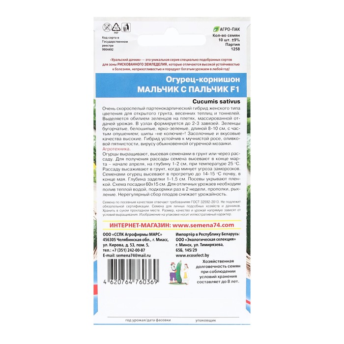 Семена Огурец "Мальчик с Пальчик", корнишон, F1, 10 шт — Характеристики