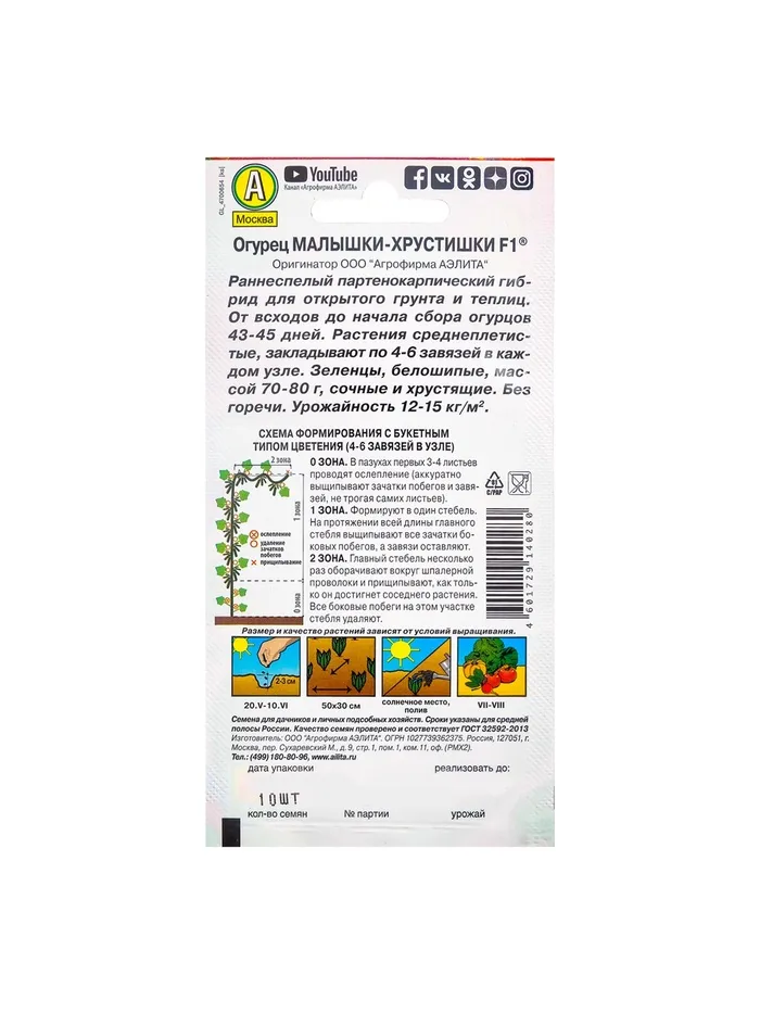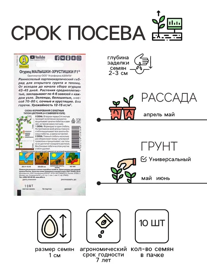 Как сажать. Семена сеют в открытый грунт или на рассаду. Возраст рассады при высадке: 20–30 дней. Плотность посадки: 2–3 растения на м². В теплицах растения подвязывают к шпалере и формируют в один стебель. Боковые побеги прищипывают над вторым–третьим листом.