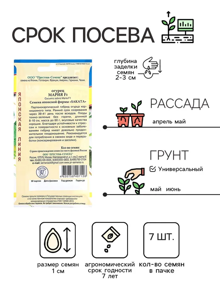 Семена Огурец "Мария F1", ц/п, 7 шт. — Характеристики