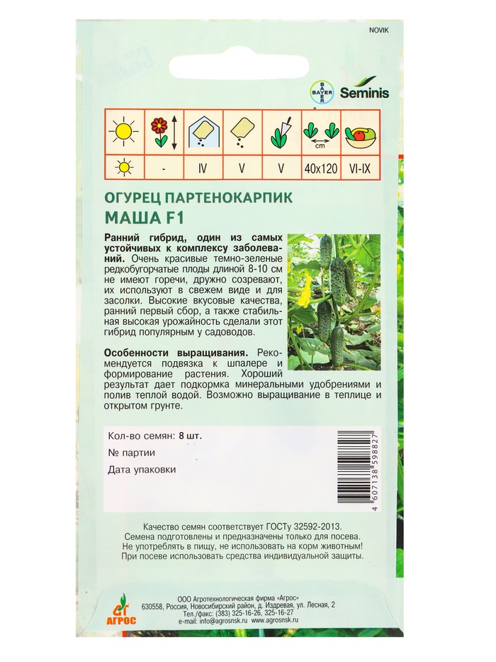 Семена Огурец "Маша" F1 8 шт — Характеристики
