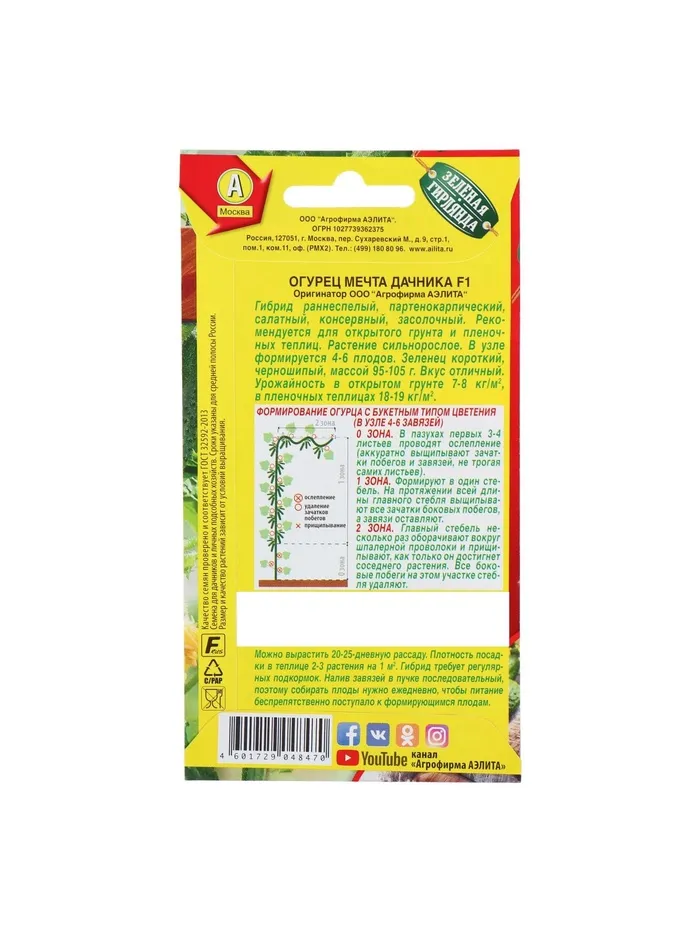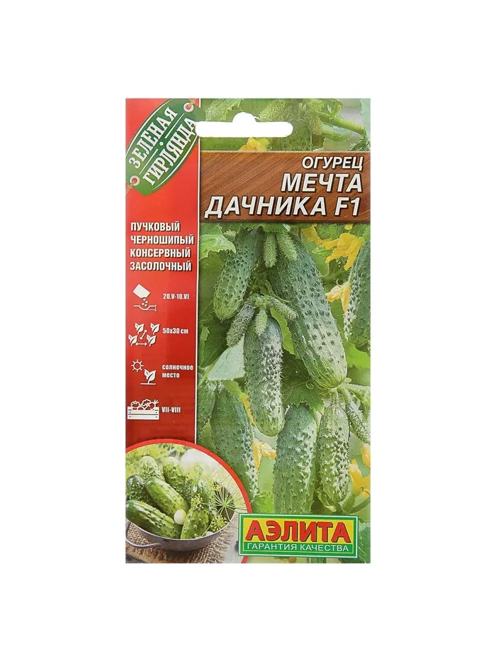 «Мечта дачника» — раннеспелый гибридный сорт огурцов. Предназначен для выращивания в открытом и защищённом грунте. Растение цветёт по женскому типу и образует короткие овальные плоды с редким чёрным опушением и приятным вкусом без горечи. Гибрид устойчив к комплексу болезней.
