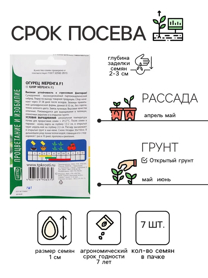 Качественные семена огурцов "Меренга" — ваш залог обильного и вкусного урожая. Подходят как для опытных садоводов, так и для начинающих любителей. Наслаждайтесь плодами своего труда с минимальными усилиями!
