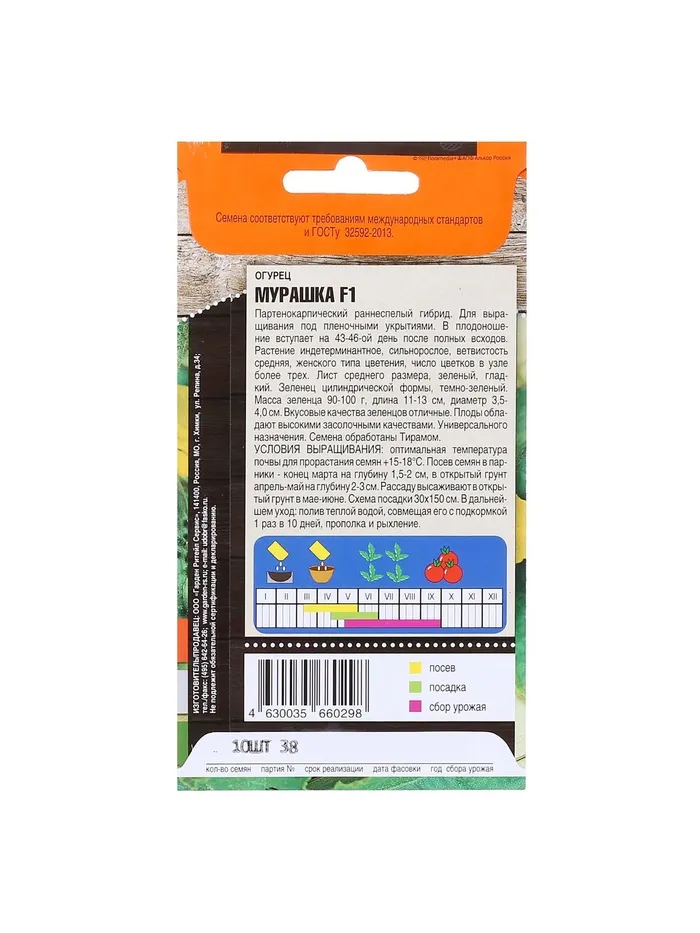 Семена Огурец "Мурашка" F1, раннеспелый, партенокарпический, 10 шт — Характеристики