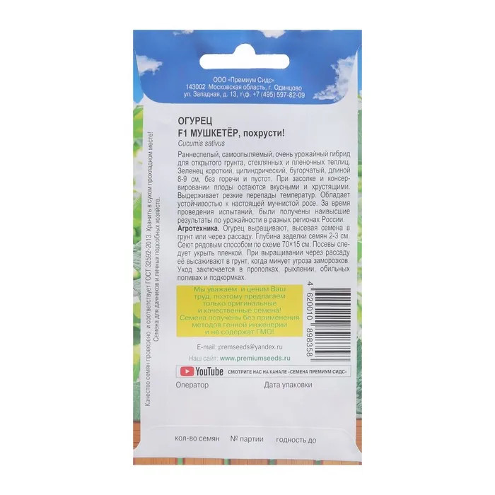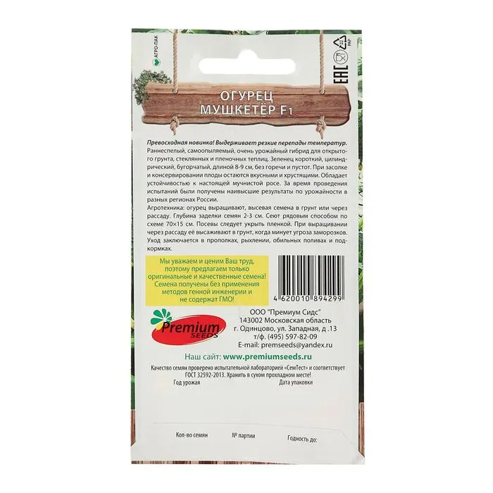 Выдерживает резкие перепады температур. Раннеспелый, самоопыляемый, очень урожайный гибрид для открытого грунта, стеклянных и пленочных теплиц. Зеленец короткий, цилиндрический, бугорчатый, длиной 8-9 см, без горечи и пустот. При засолке и консервировании плоды остаются вкусными и хрустящими. Обладает устойчивостью к настоящей мучнистой росе. За время проведения испытаний, были получены наивысшие результаты по урожайности в разных регионах России.