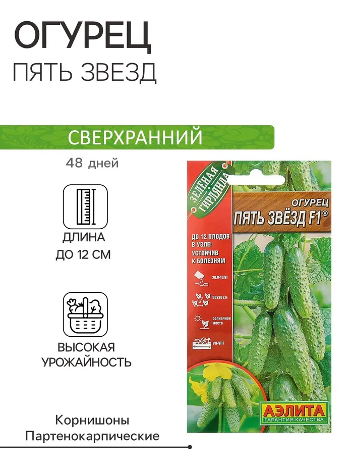 Семена Огурец "Мужичок-землячок" F1, пчелоопыляемый, 7 шт — Характеристики