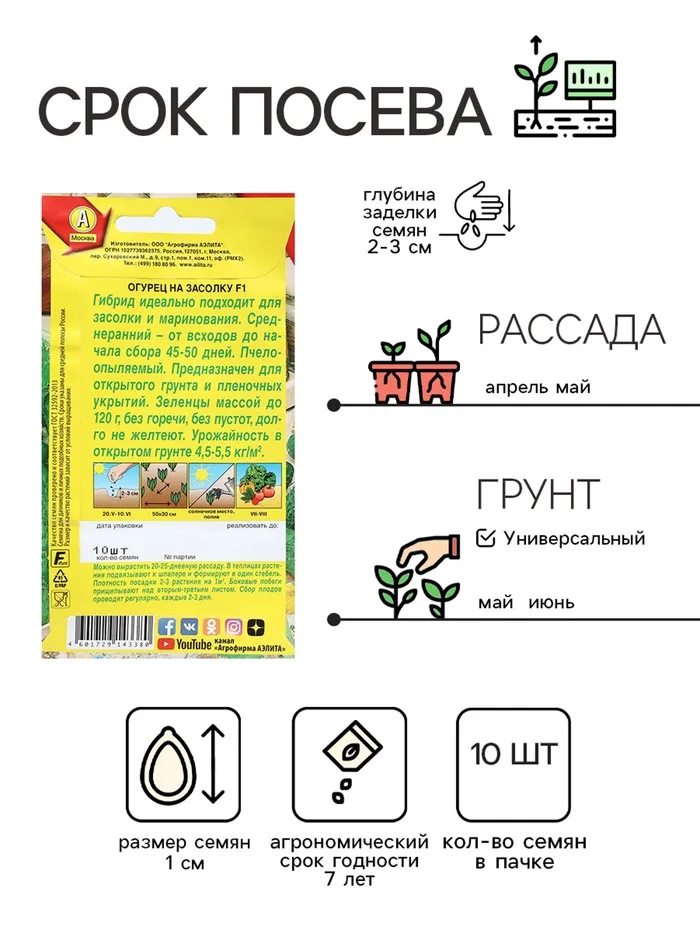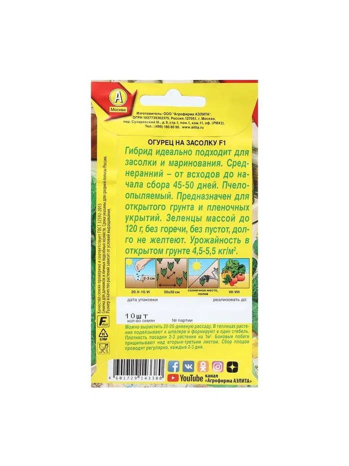 Семена Огурец "На засолку", F1, ц/п, 10 шт — Характеристики