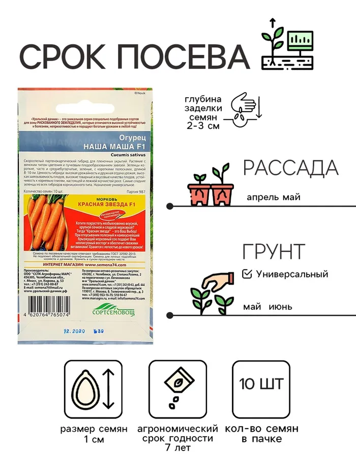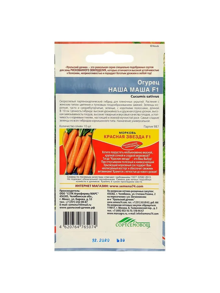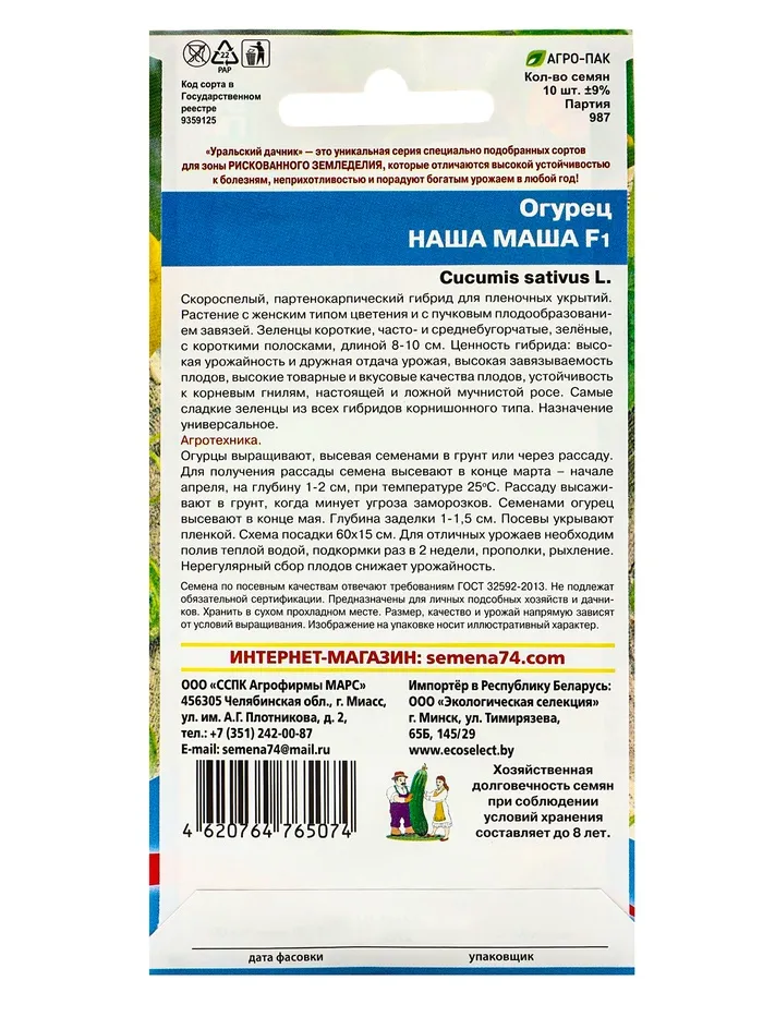 Семена Огурец "Наша Маша" F1 раннеспелый, партенокарпический, 10 шт — Характеристики