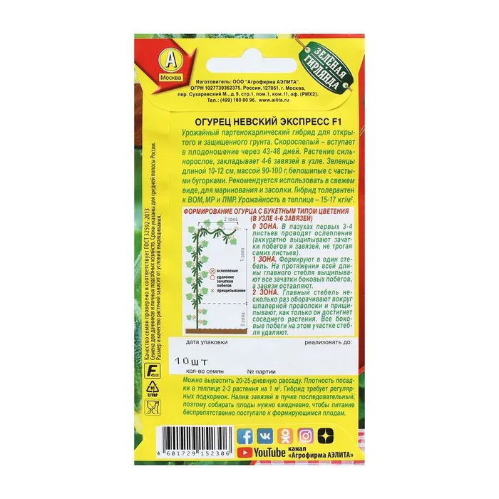 Урожайный партенокарпический гибрид для открытого и защищенного грунта. Скороспелый – вступает в плодоношение через 43-48 дней. Растение сильнорослое, закладывает 4-6 завязей в узле. Зеленцы длиной 10-12 см, массой 90-100 г, белошипые с частыми бугорками. Рекомендуется использовать в свежем виде, для маринования и засолки. Гибрид толерантен к ВОМ, МР и ЛМР. Урожайность в теплице – 15-17 кг/м2.