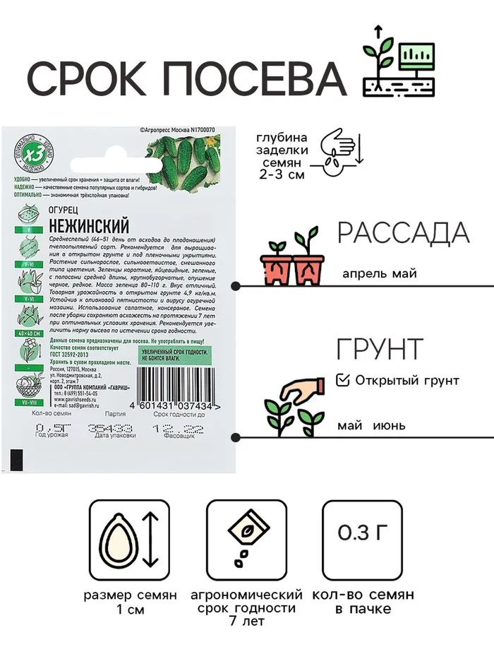 Семена Огурец "Нежинский", раннеспелый, пчелоопыляемый, 0,3 г серия ХИТ х3 — Характеристики