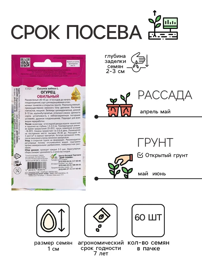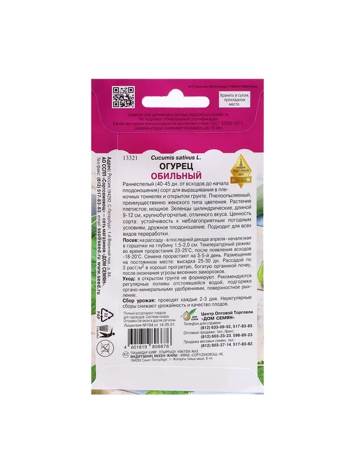 Раннеспелый (40-45 дней) пчелоопыляемый сорт консервного назначения. Зеленец цилиндрический, крупнобугорчатый (бугорки редкие), длиной 8,7-9,3 см, массой 70-102 г. Ценность сорта: дружное формирование урожая, отличные вкусовые и товарные качества, длительность сохранения окраски плодов. Выращивают прямым посевом семян в грунт и рассадным способом. Семена в открытый грунт высевают, когда почва прогреется до 15-20°С днем и не ниже 8°С ночью. Бороздки или лунки поливают, заделывают в них семена на глубину 1,5-2,0 см и накрывают пленкой. В остекленные или пленочные теплицы, тоннели с начала мая высевают семена или с середины мая высаживают 20-25-дневную рассаду, имеющую 3-5 настоящих листьев. Схема посадки 70х40 см. Растение прищипывают над 5-7 листом. Плоды формируются на боковых побегах.