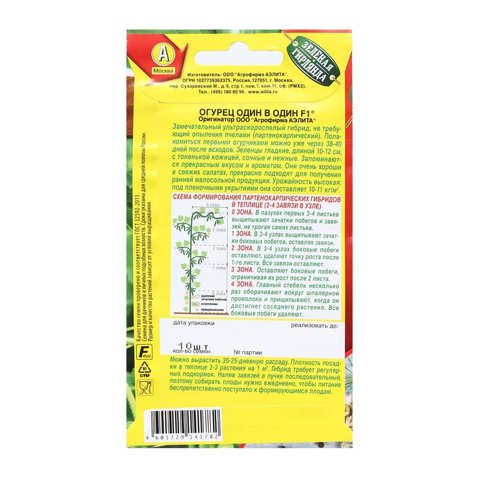 Замечательный ультраскороспелый гибрид, не требующий опыления пчелами (партенокарпический). Полакомиться первыми огурчиками можно уже через 38-40 дней после всходов. Зеленцы гладкие, длиной 10-12 см, с тоненькой кожицей, сочные и нежные. Запоминаются прекрасным вкусом и ароматом. Они очень хороши в свежих салатах, прекрасно подходят для получения ранней малосольной продукции. Урожайность высокая: под пленочными укрытиями она составляет 10-11кг/м2.