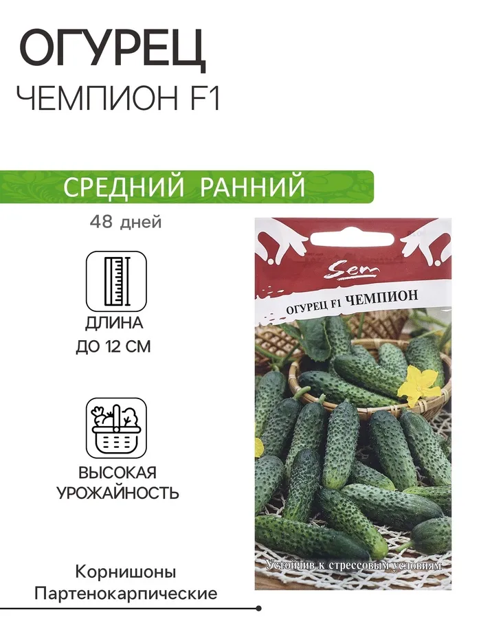 Специальный партенокарпический гибрид для подоконника и балкона. Скороспелый, первые огурчики вы получите через 41-43 дня от всходов. Главный стебель сильнорослый, боковое ветвление средней интенсивности. Завязи закладываются пучками, по 5-8 шт. в пазухе каждого листа. В технической спелости зеленцы достигают длины 11-14 см и массы 100-120 г. Но доводить их до таких размеров в комнатных условиях не нужно. Убирайте корнишонами (7 см) или даже пикулями (5 см). Тогда плодоношение будет более активным, т.к. налив зеленцов в пучках происходит не одновременно, а последовательно. Гибрид успешно растет в теплицах и о/г. С одного растения под пленкой можно получить 6-8 кг зеленцов.