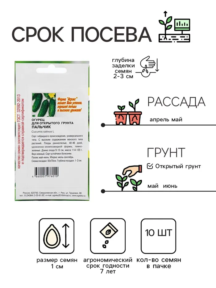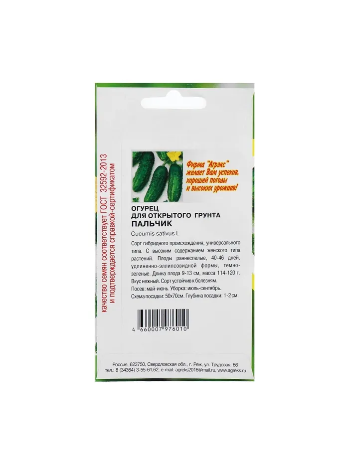 Семена Огурец "Пальчик", скороспелый, партенокарпический, 10 шт — Характеристики