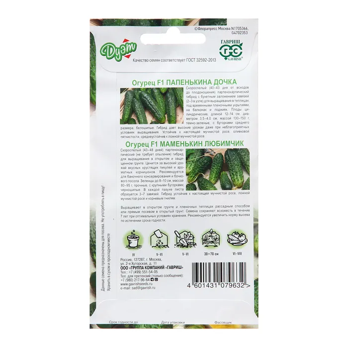 Семена Огурец "Папенькина дочка", 0,5 г + "Маменькин любимчик", 0,5 г — Характеристики