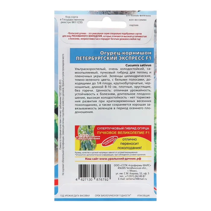 Огурцы выращивают, высевая семенами в грунт или через рассаду. Для получения рассады семена высевают в конце марта – начале апреля, на глубину 1-2 см, при температуре 25 градусов. Рассаду высаживают в грунт, когда минует угроза заморозков. Семенами огурец высевают в прогретую до 14-15 градусов почву, в конце мая. Глубина заделки 1-1,5 см. Посевы укрывают пленкой. Схема посадки 60х15 см. Для отличных урожаев необходим полив теплой водой, подкормки раз в 2 недели, прополки, рыхление. Нерегулярный сбор плодов снижает урожайность.