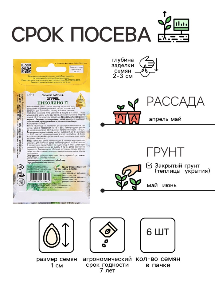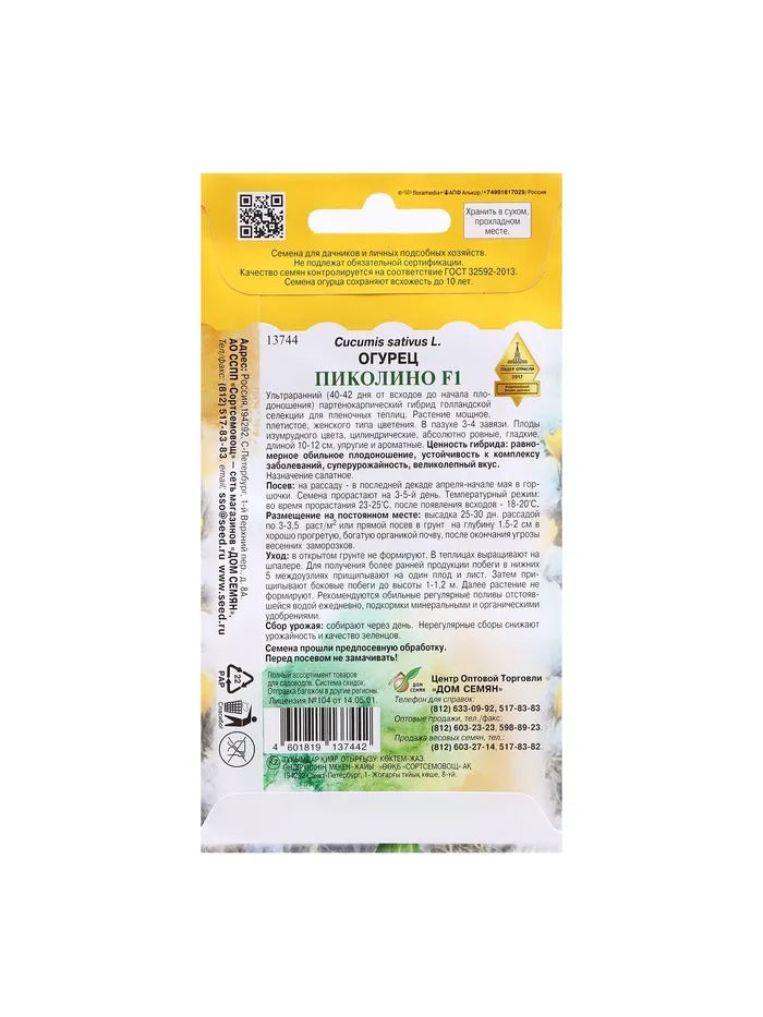 Плоды характеризуются очень высокой выровненностью, имеют превосходный вкус, отличаются высокой лежкостью без потери исходных качеств. Цвет темно-изумрудный, блестящий, форма цилиндрическая, без утолщений. Гибрид ультраранний, самоопыляемый. Растение активно образовывает боковые побеги. Формирует по 3-4 плода в каждой пазухе листа. Стабильно высоко-продуктивен на протяжении всего периода выращивания. Устойчив к кладоспориозу, мучнистой росе, вирусу огуречной мозаики и листовой пятнистости.