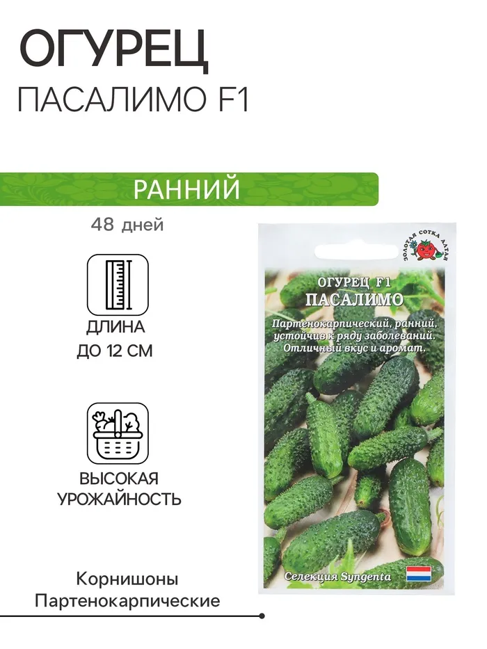 Среднеранний (50-52 дня) партенокарпический гибрид женского типа цветения, не требующий опыления. Способен одарить сказочными урожаями при минимальных трудозатратах. Важная особенность сорта - компактный куст, не нуждающийся в формировании (прищипке) + длительный (до наступления заморозков) период плодоношения. Растение одностебельное, не требует формирования, с пучковым образованием завязей. Зеленец цилиндрический, крупнобугорчатый, темно-зеленый, длиной 10-12 см, массой 100- 120 г. Назначение универсальное. Ценность гибрида: высокая урожайность, холодостойкость, длительный период плодоношения, отличные вкусовые качества, устойчивость к болезням. Предназначен для выращивания под пленочными укрытиями. Для получения 2-го урожая, начиная с августа, провести 2-3 внекорневых подкормки комплексным минеральным удобрением.