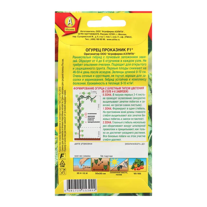 Семена Огурец "Проказник", F1, 0,25 г — Характеристики
