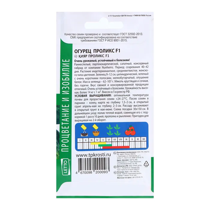 Семена Огурец Проликс F1, семена Агроуспех 7шт — Характеристики