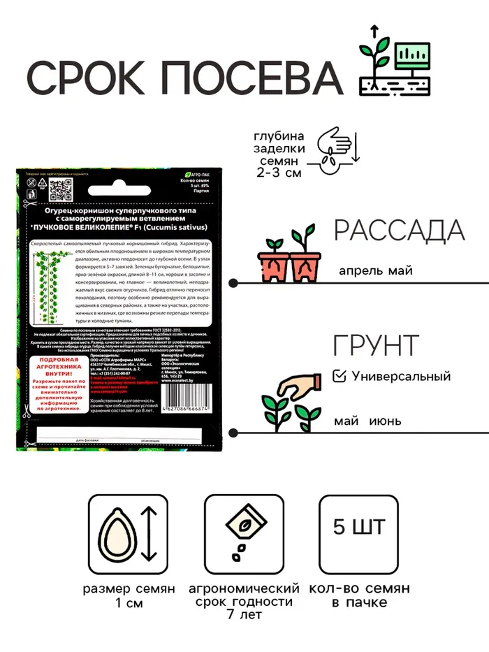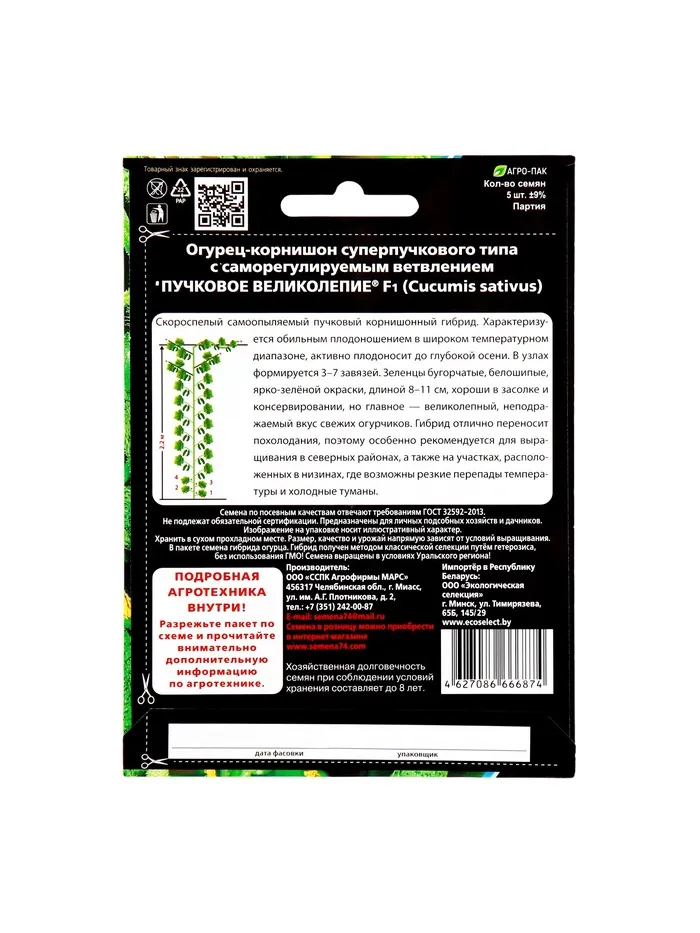 Семена Огурец "Пучковое великолепие" F1 скороспелый, пучковый, партенокарпический, 5 шт — Характеристики
