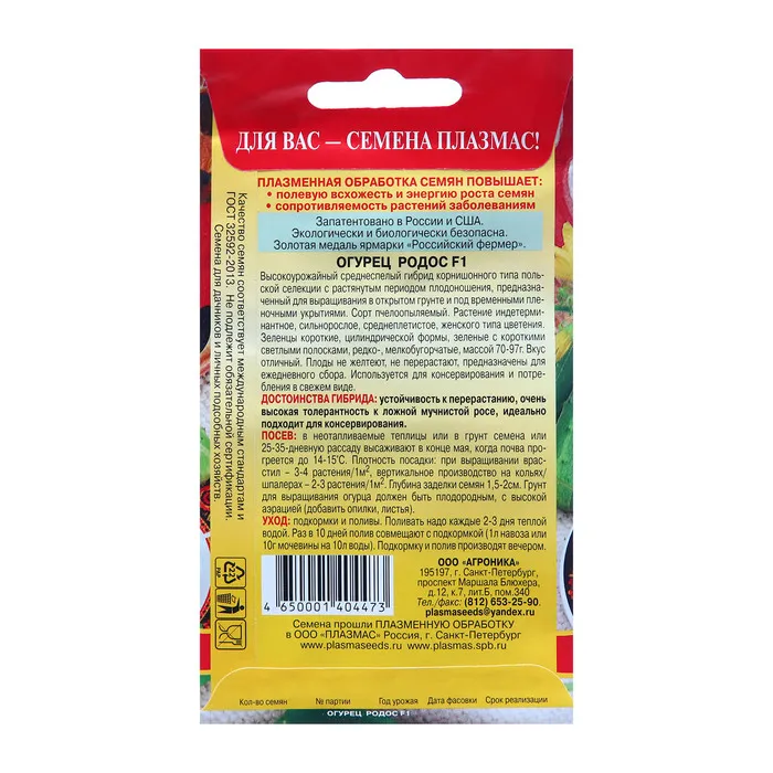 Высокоурожайный среднеспелый гибрид корнишонного типа польской селекции с растянутым периодом плодоношения, предназначенный для выращивания в открытом грунте и под временными пленочными укрытиями. Пчелоопыляемый. Растение индетерминантное, сильнорослое, среднеплетистое, женского типа цветения. Зеленцы короткие, цилиндрической формы, зеленые с короткими полосками, мелкобугорчатые, массой 70-95 г. Вкус отличный. Плоды не желтеют, не перерастают, предназначены для ежедневного сбора. Используется для консервирования и потребления в свежем виде. Посев: в неотапливаемые теплицы или в грунт семена или 25-35 дневную рассаду высаживают начиная с апреля. Плотность посадки: при выращивании в расстил - 4-5 растений/ 1м², вертикальное производство на кольях/шпалерах - 3-4 растения/ 1м². Глубина заделки семян 2-3 см. Грунт для выращивания огурца должен быть плодородным с высокой аэрацией (добавить опилки, листья). Уход: подкормки и поливы. Поливать надо каждые 2-3 дня теплой водой. Раз в 10 дней полив совмещают с подкормкой (1 л навоза или 10 г мочевины на 10 л воды). Подкормку и полив производят вечером. Достоинства гибрида: устойчивость к перерастанию, очень высокая толерантность к ложной мучнистой росе, идеально подходит для консервирования.