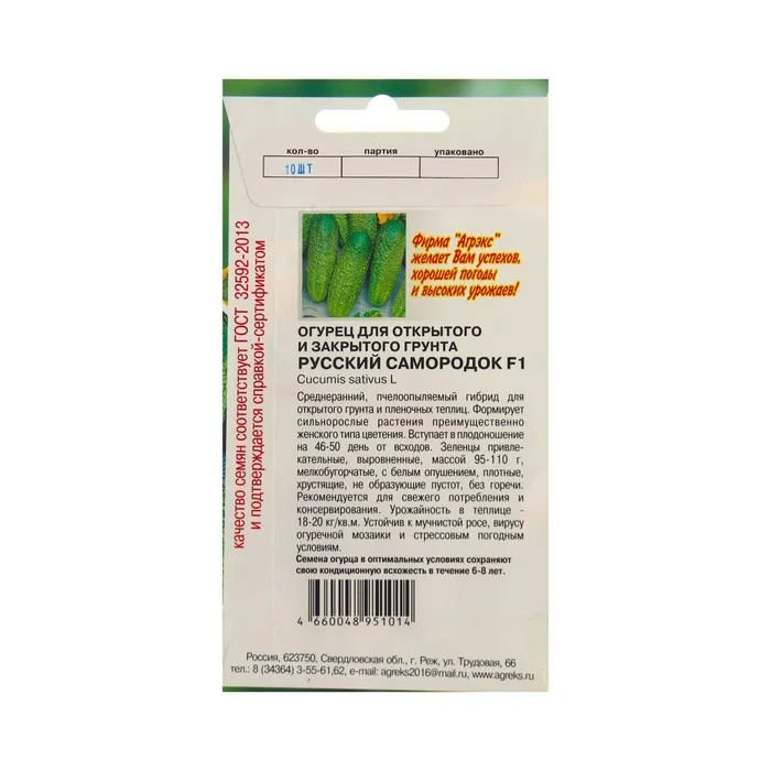Для огурца пригодны среднесуглинистые, воздухопроницаемые почвы. Огурцы выращивают, высевая семенами в грунт или через рассаду. Для получения рассады семена заделывают на глубину 0,5-1 см, при температуре 25 С. При появлении всходов температуру снижают до 15 С. Рассаду высаживают в грунт, когда минует угроза заморозков. Семенами высевают в прогретую до 15-18 С почву. Глубина заделки семян 1-2 см. Посевы следует укрыть пленкой. Дальнейший уход заключается в прополке, рыхлении, поливе и подкормках. Поливать после захода солнца теплой водой. За время вегетации проводят 2-3 подкормки. Для этого используют специальное комплексное водорастворимое минеральное удобрение, обеспечивающее необходимое питание овощным культурам. Сбор урожая - по мере созревания зеленцов.