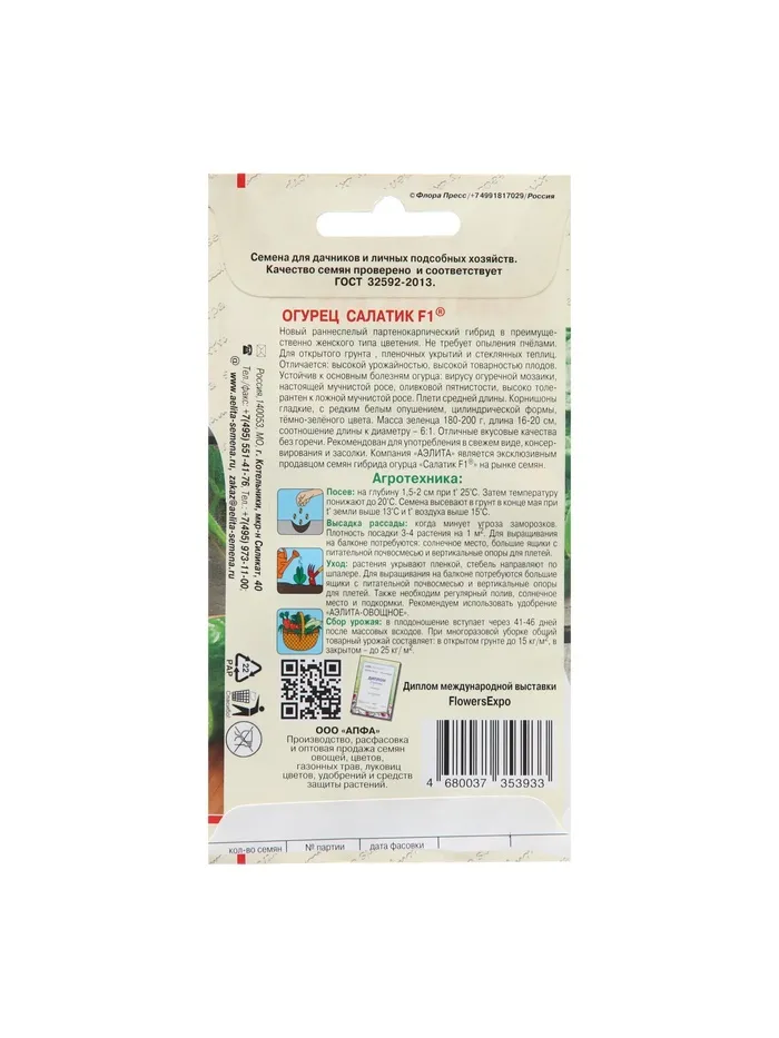 Корнишоны гладкие, с редким белым опушением, цилиндрической формы, тёмно-зелёного цвета. Масса зеленца 180-200 г, длина 16-20 см, соотношение длины к диаметру – 6:1. Отличные вкусовые качества без горечи. Рекомендован для употребления в свежем виде, консервирования и засолк
