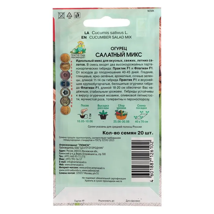 Семена Огурец "Салатный", Микс, 20 шт — Характеристики