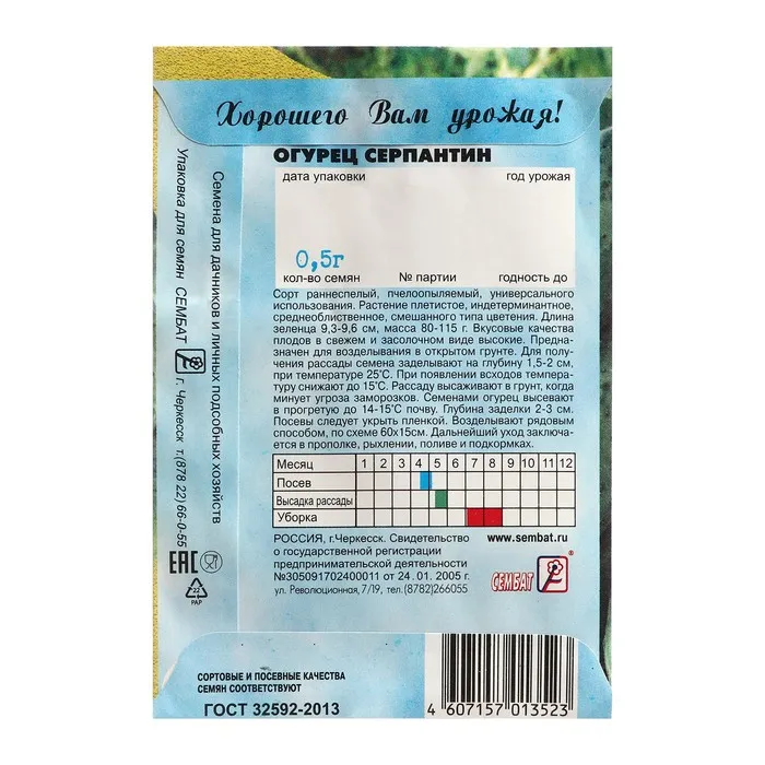 Семена Огурец "Серпантин", 0,5 г — Характеристики