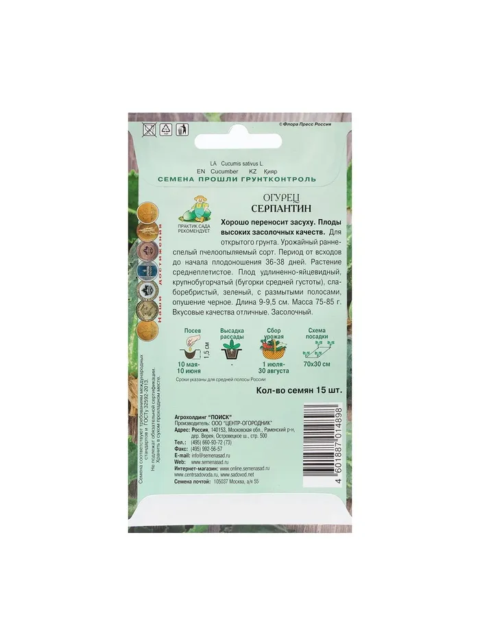Семена Огурец "Серпантин" 15 шт — Характеристики