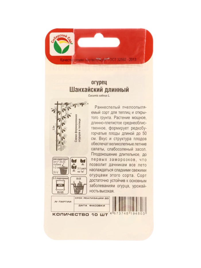 Семена Огурец Шанхайский длинный 10 шт. — Характеристики