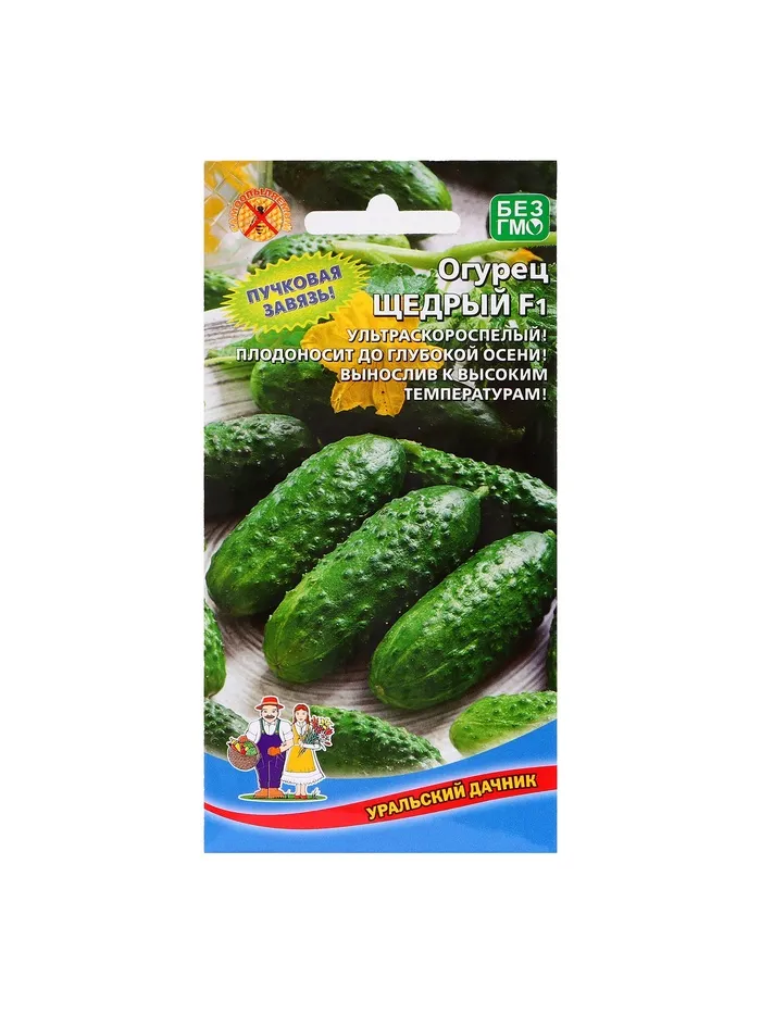 Ультраскороспелый партенокарпический гибрид преимущественно женского типа цветения и букетного расположения завязей, для открытого и закрытого грунта. В пазухе листа образуется по 5-8 завязей. Зеленцы темно-зеленые, бугорчатые, белошипые, длиной 10-12 см, хрустящие, сладкие, без горечи. Выделяется обилием завязей, привлекательным видом зеленцов и их высокими товарными качествами. Вкусовые качества свежих, консервированных и соленых огурчиков отличные.