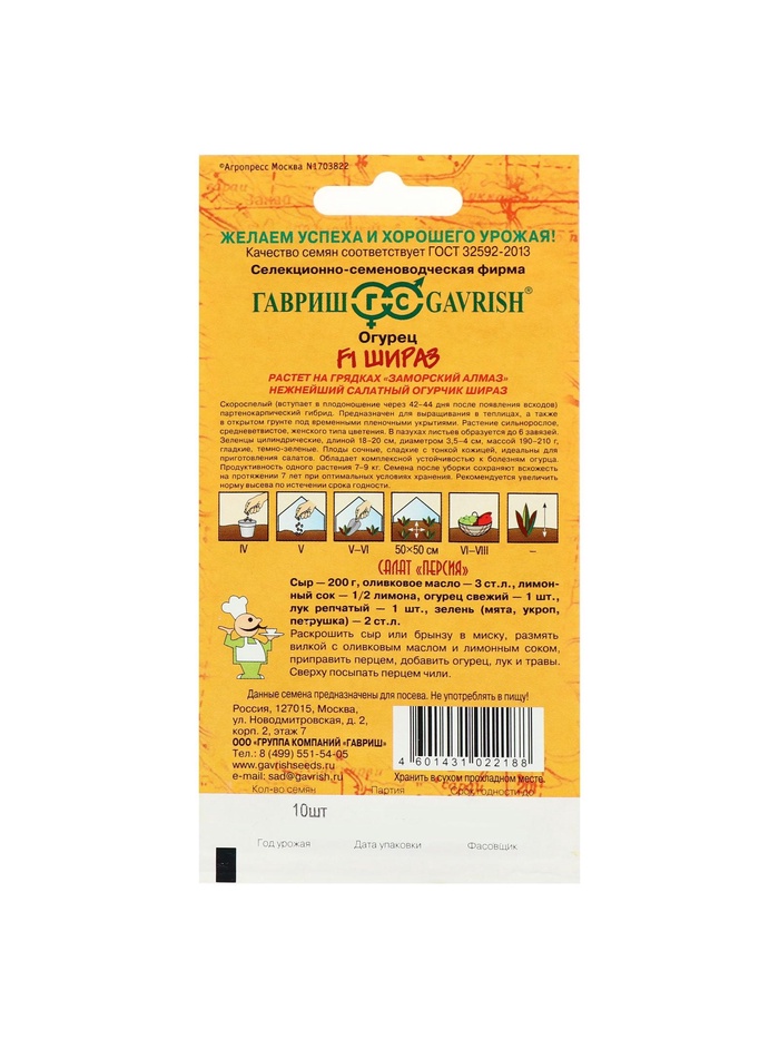 Семена Огурец «Шираз», F1, 10 шт., «География-Гавриш» — Характеристики