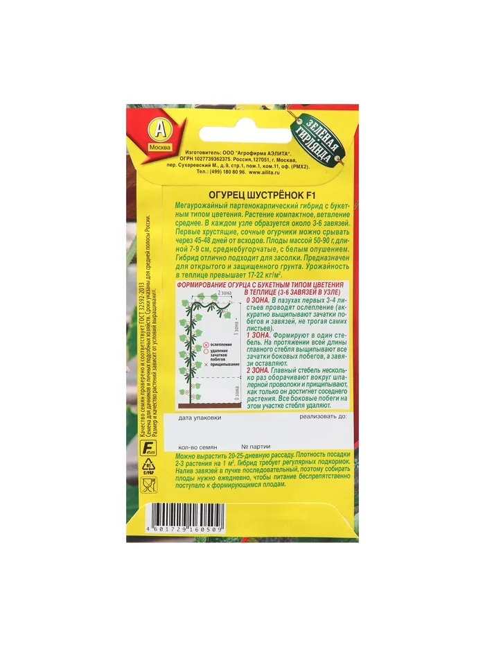Семена Огурец "Шустренок", F1, — Характеристики